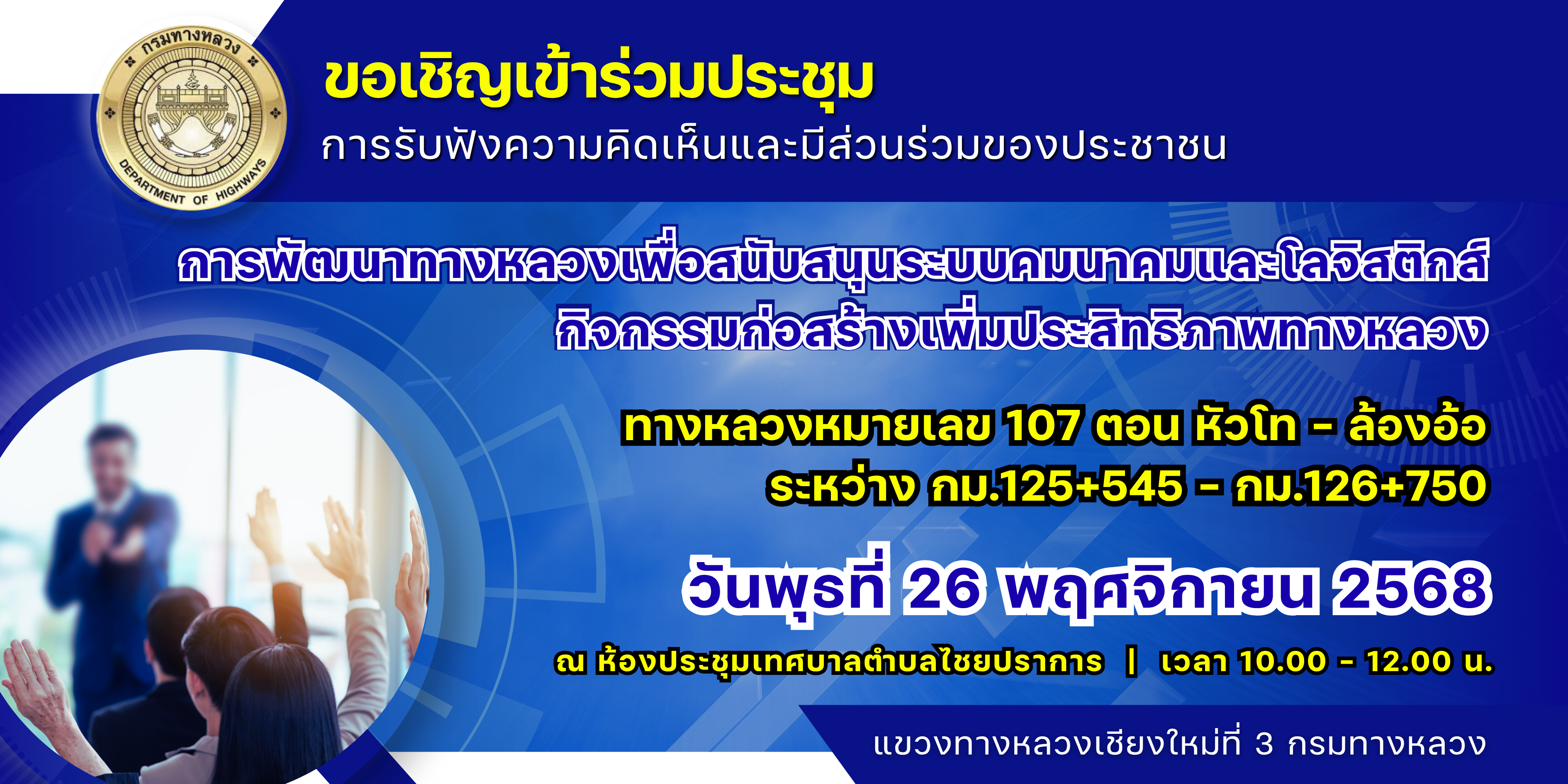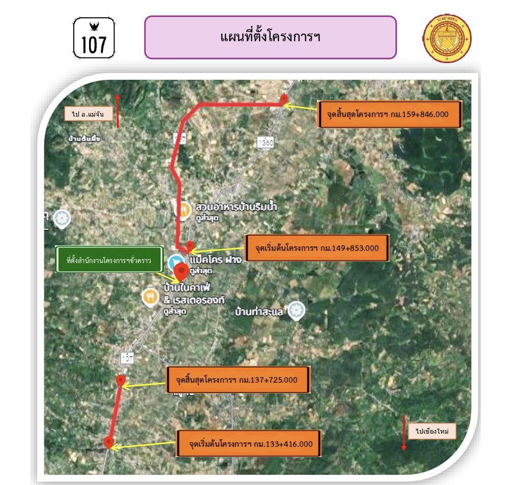 ข่าวประชาสัมพันธ์ โครงการก่อสร้าง ทางหลวงหมายเลข 107 สาย เชียงใหม่-อ.แม่จัน ตอน อ.ฝาง-อ.แม่อาย