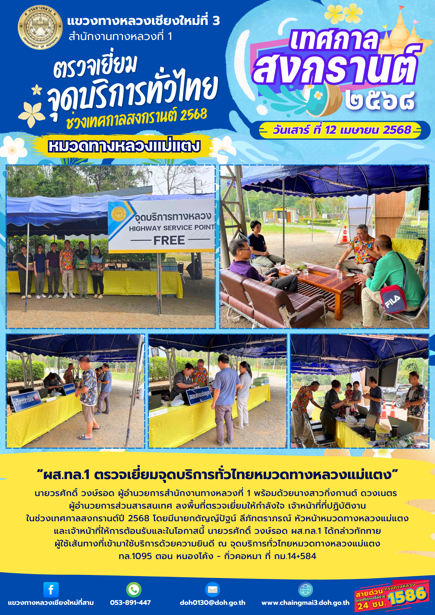 “ผส.ทล.1 ตรวจเยี่ยมจุดบริการทั่วไทยหมวดทางหลวงแม่แตง”