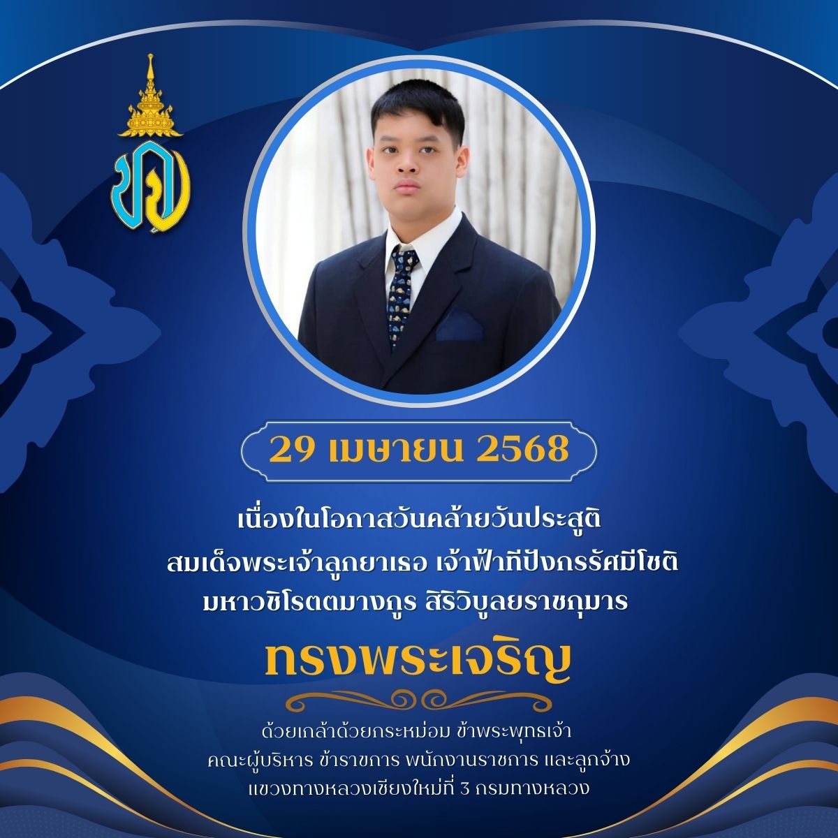 29 เมษายน 2568 วันคล้ายวันประสูติ สมเด็จพระเจ้าลูกยาเธอ เจ้าฟ้าทีปังกรรัศมีโชติ มหาวชีโรตตมางกูร สิริวิบูลยราชกุมาร