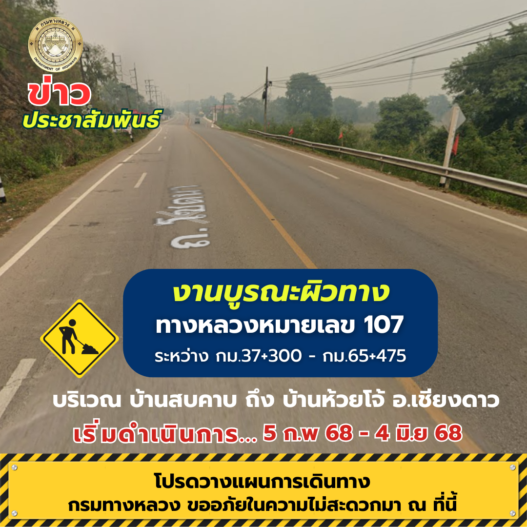 กรมทางหลวง รายงานสถานการณ์น้ำท่วมประจำวันที่ 26 ก.พ. 68 พบการจราจรผ่านไม่ได้ 1 แห่ง สอบถามเส้นทางโทร 1586