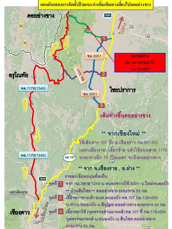 แขวงทางหลวงเชียงใหม่ที่ 3 ได้รับจัดสรรงบประมาณ งานแก้ไขและป้องกันน้ำกัดเซาะ ในทางหลวงหมายเลข 1249 ตอน แม่งอน-หนองเต่า ระหว่าง กม.14+620-กม.15+050 โดยแขวงฯได้จ้างเหมา บริษัท เคนเบอร์ จีโอเทคนิค (ไทยแลนด์) จำกัด เป็นผู้ดำเนินการตามสัญญาจ้าง ที่ คค 06009/30/2561 ลงวันที่ 28 มิถุนายน 2561 สัญญาเริ่มต้น วันที่ 29 มิถุนายน 2561 สิ้นสุดวันที่ 24 เมษายน 2562 ระยะเวลาดำเนินการ 300 วัน ในระหว่างการดำเนินการก่อสร้าง แขวงฯ มีความจำเป็นต้องทำการปิดการจราจรในจุดดังกล่า มีผลทำให้ผู้ใช้เส้นทาง ตลอดจนผู้อาศัยสองข้างทางได้รับผลกาะทบ แขวงฯ จึงได้จัดระบบการจราจร-ขนส่ง โดยติดตั้งป้ายแนะนำเส้นทางเลี่ยง เพื่ออำนวยความสะดวกแก่ผู้ใช้เส้นทาง