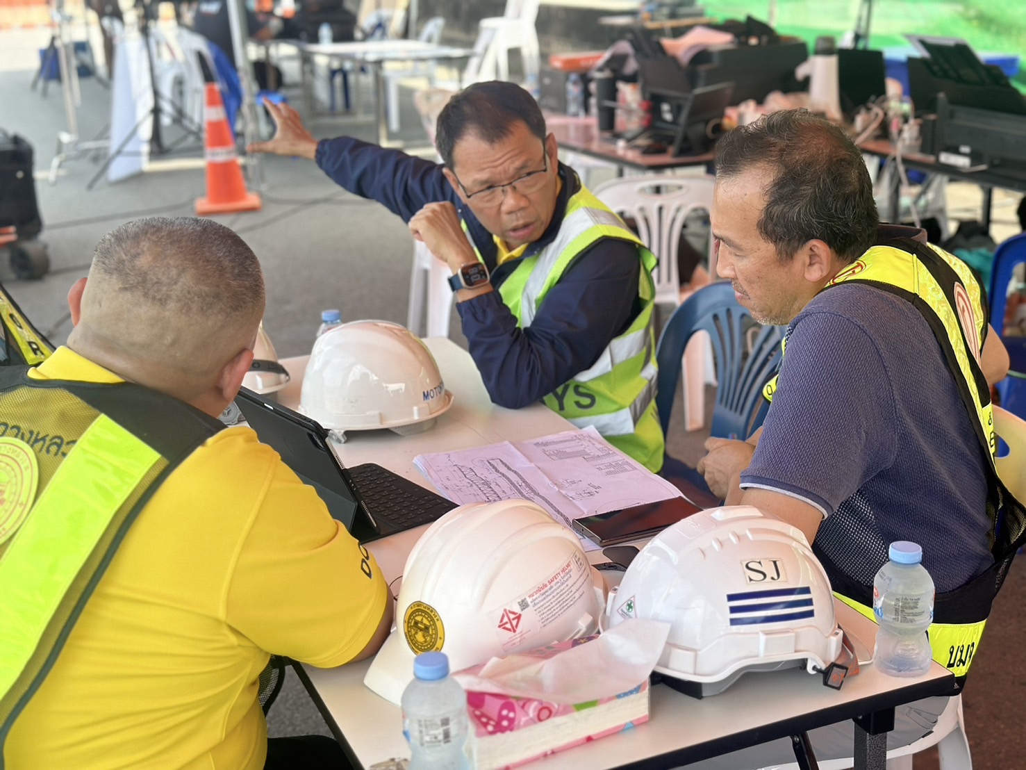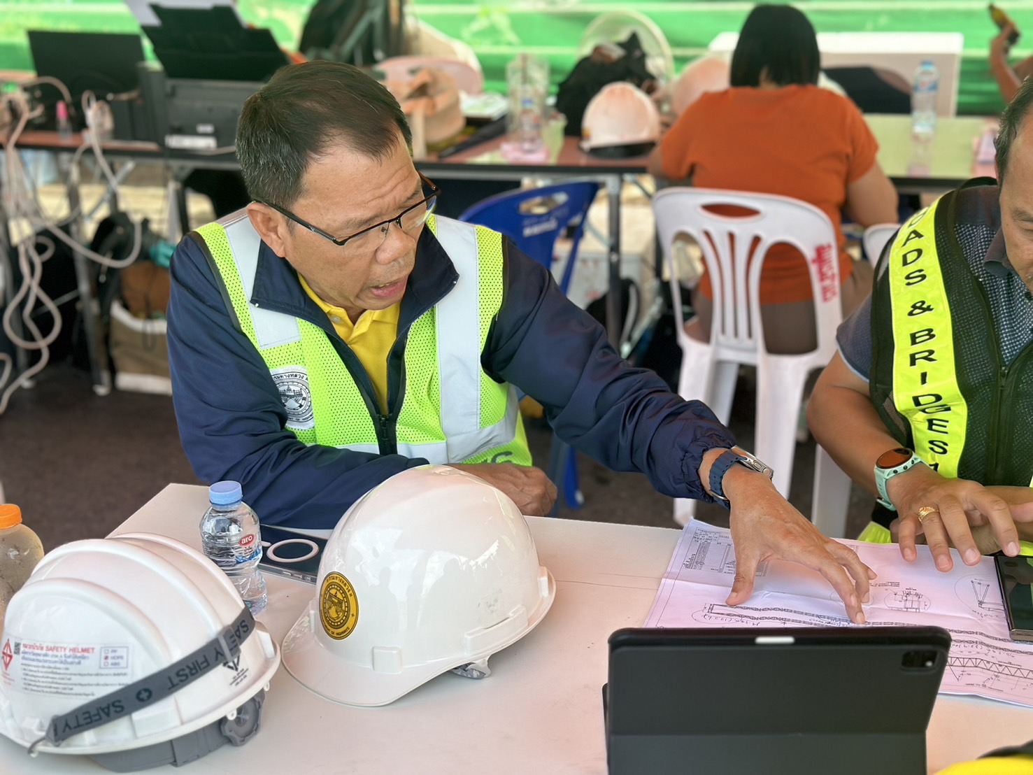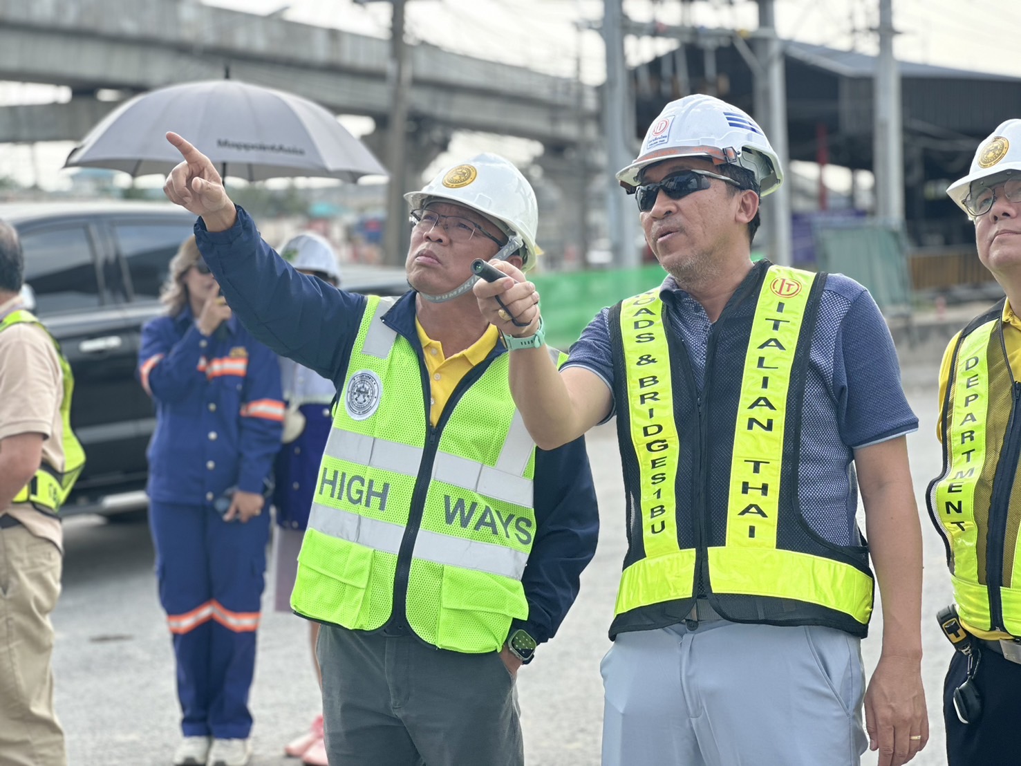 อธิบดีกรมทางหลวง จึงได้เน้นย้ำความปลอดภัยขั้นสูงสุด โดยให้เจ้าหน้าที่ทุกคนปฏิบัติงานภายใต้มาตรการด้านความปลอดภัยอย่างเคร่งครัด มีทีมเฝ้าระวังและรายงานผลตรวจวัดการเคลื่อนตัวของโครงสร้างเหล็กอย่างต่อเนื่อง มีการสื่อสารประสานงานระหว่างเจ้าหน้าที่ปฏิบัติงานบนที่สูงและภาคพื้นดิน พร้อมจัดเตรียมเครื่องมือและอุปกรณ์ Safety เพื่อป้องกันเหตุซ้ำ โดยได้รับความร่วมมือจากหน่วยงาน ปภ.สมุทรปราการ และมูลนิธิการกุศลสมุทรสาคร เฝ้าระวังเหตุตลอด 24 ชั่วโมง การดำเนินการจึงอาจส่งผลกระทบต่อการจราจรบางส่วน กรมทางหลวงจึงขออภัยในความไม่สะดวก พร้อมทั้งเปิดช่องทางพิเศษ โดยเจ้าหน้าที่ตำรวจได้จัดกำลังพลอำนวยความสะดวก เร่งระบายรถ และแก้ไขปัญหาการจราจรติดขัด