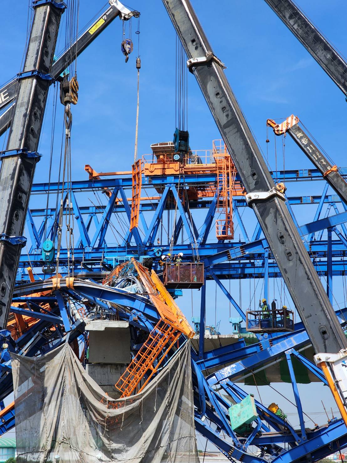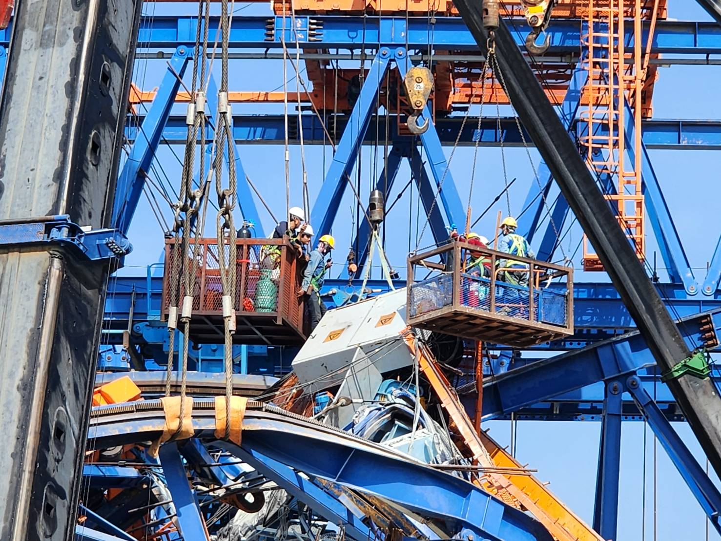 นายอภิรัฐ ไชยวงศ์น้อย อธิบดีกรมทางหลวง เปิดเผยความคืบหน้าการรื้อถอนโครงสร้างเหล็กและชิ้นส่วนสะพานคอนกรีตที่เสียหาย จากเหตุการณ์ถล่มที่เกิดขึ้นบนทางหลวงหมายเลข 35 (ถนนพระราม 2) โดยตั้งแต่ช่วงเช้าของวันนี้ ทีมวิศวกรผู้เชี่ยวชาญกำลังดำเนินการตัดชุด Winch ด้านหน้า ซึ่งต้องใช้ความระมัดระวังสูงสุด เนื่องจากการดำเนินงานดังกล่าวมีความยากในการรื้อถอนและมีความซับซ้อน ต้องดำเนินการอย่างเป็นขั้นตอน ได้แก่