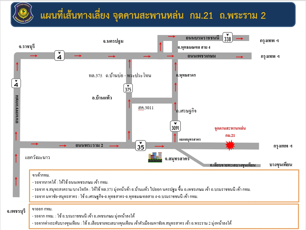 ทั้งนี้ประชาชนสามารถสอบถามข้อมูลเพิ่มเติมได้ที่ สายด่วนกรมทางหลวง โทร. 1586