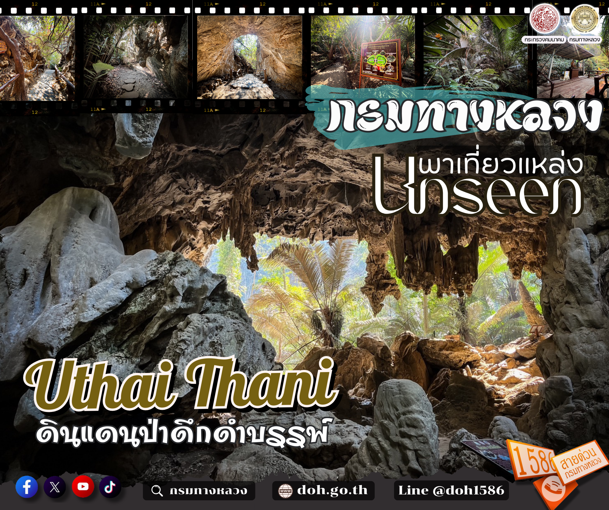 กรมทางหลวง (ทล.) ขอเชิญชวนประชาชนเที่ยวแหล่ง Unseen เพื่อศึกษาธรรมชาติแหล่งท่องเที่ยวที่มีเอกลักษณ์ถ้ำหินปูนขนาดใหญ่อายุกว่าล้านปี “หุบป่าตาด” จังหวัดอุทัยธานี ป่าโบราณที่ซ่อนตัวอยู่ภายในเขาหินปูนที่ถูกน้ำฝนกัดเซาะเป็นเวลานานจนเกิดรอยแยกของหินเป็นโพรงถ้ำขนาดใหญ่ภายในขุนเขา โดยใช้เวลานับแสน นับหมื่นปีจนกระทั่งเพดานถ้ำถล่มลงมาพร้อมพืชพันธุ์ไม้ ทำให้เกิดเป็นป่าขึ้นภายในถ้ำ