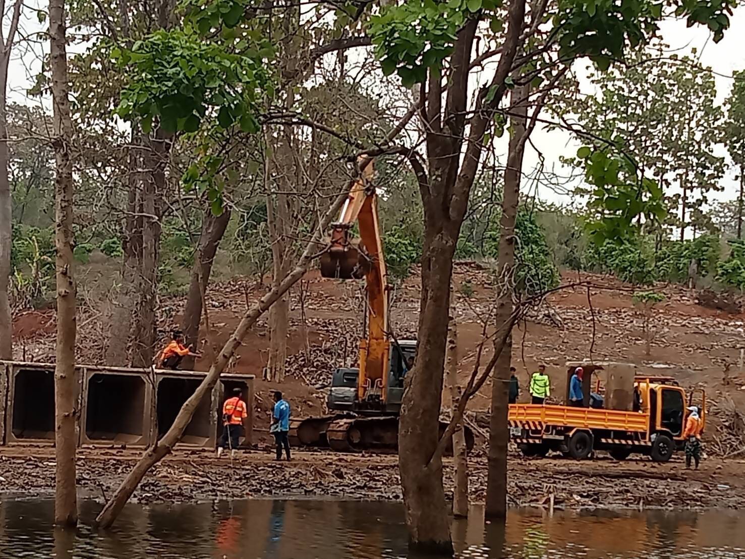 - ขุดลอกรางระบายน้ำเพื่อเร่งระบายน้ำในส่วนที่เหลือ