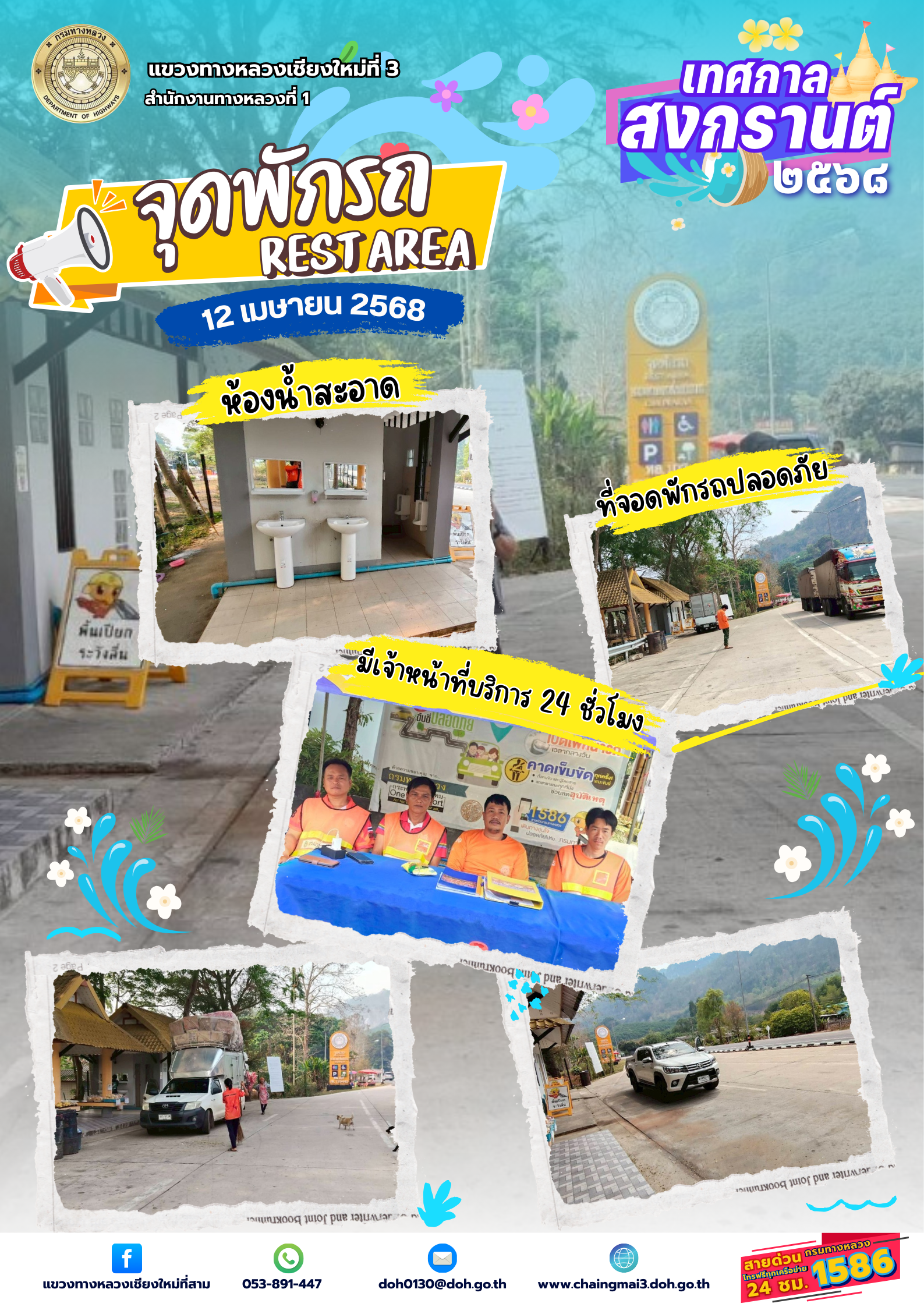 ผู้ใช้เส้นทางพบปัญหาเกี่ยวกับการใช้รถ/รถเสีย /ขัดข้อง กด 1586 สายด่วนกรมทางหลวง