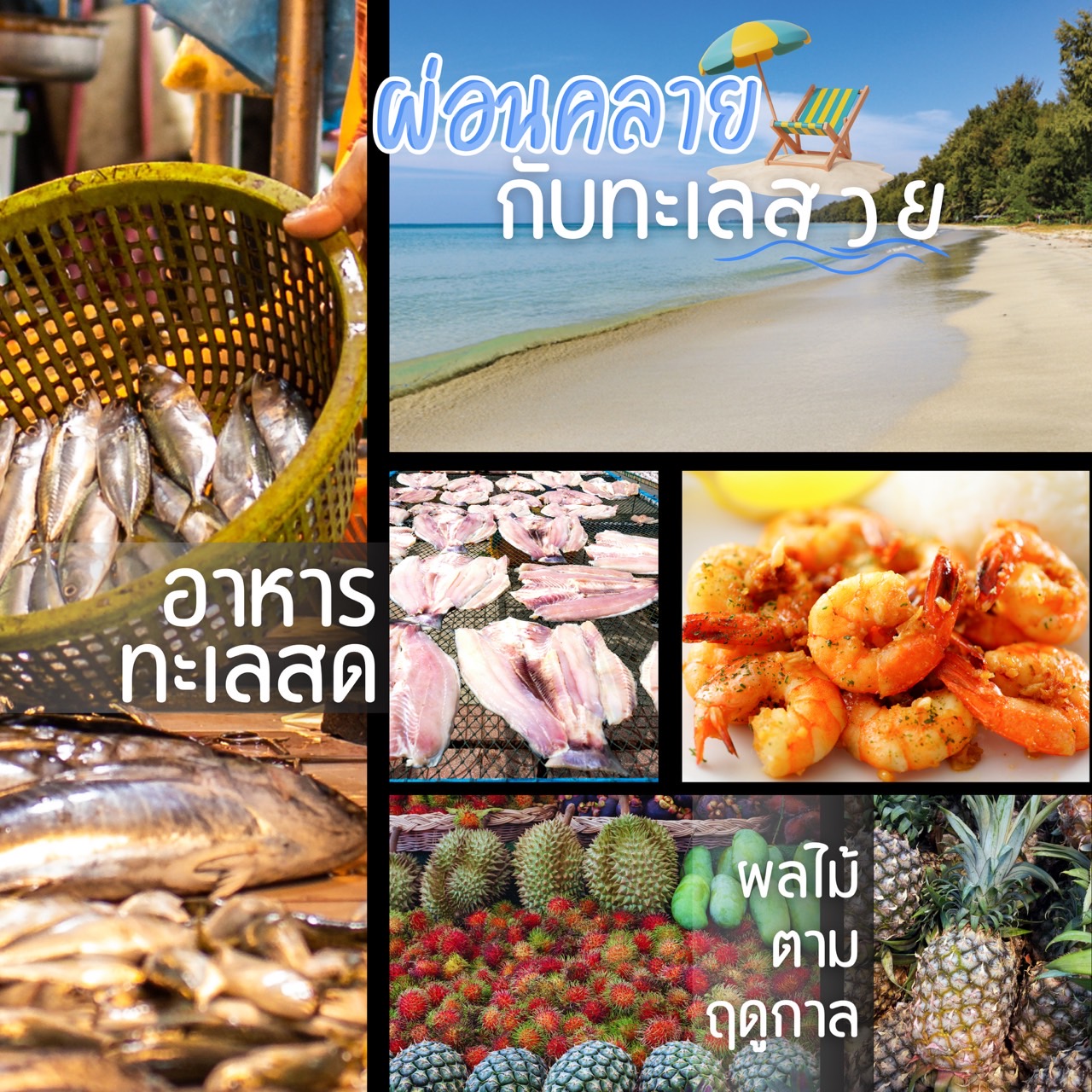 เติมสุขให้ครบสูตรด้วยหาดทราย ท้องทะเล และฟ้าสีครามของจังหวัดระยอง ไม่ว่าจะเป็น หาดสวนสน หาดแม่รำพึง หาดแสงจันทร์ หาดพยูน และหาดสวยๆ อีกมากมายที่ต่างรอคอยนักท่องเที่ยวมาพักผ่อนหย่อนใจ พร้อมเติมพลังด้วยเมนูเด็ดจากอาหารทะเลสดใหม่ส่งตรงจากทะเล และอย่าลืมแวะซื้อของดีของเด็ดเมืองระยอง เช่น อาหารทะเลสด ผลิตภัณฑ์อาหารทะเลแปรรูป หรือผลไม้ภาคตะวันออกอย่างทุเรียน มังคุด เงาะ ลองกอง สละ กระท้อน และอีกมากมาย แค่มาระยองจังหวัดเดียวก็คุ้มค่าจากความสุขที่ได้ใกล้ชิดธรรมชาติและความอร่อยจากอาหารที่หลากหลาย เรียกได้ว่าเติมสุขครบ...จบในทริปเดียว