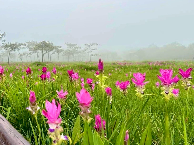 รมทางหลวงขอเชิญชวนนักเดินทางร่วมสัมผัสความความงามของดอกกระเจียวที่บานตามธรรมชาติในฤดูฝน ท่ามกลางสายหมอกและธรรมชาติอันอุดมสมบูรณ์ ณ จังหวัดชัยภูมิ