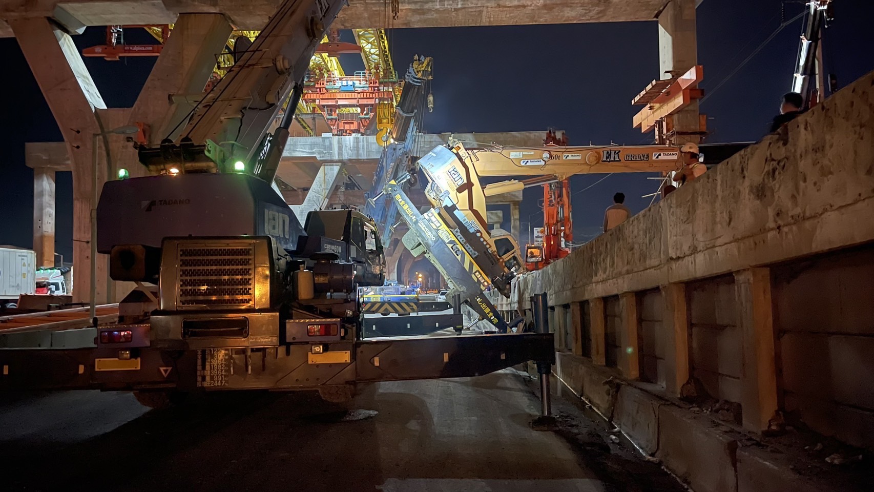 สาเหตุเบื้องต้นมาจากการที่รถเครนเสียการทรงตัวระหว่างทำงาน ทำให้บูมและท่อนเหล็กหล่นลงมาในช่องทางคู่ขนาน และกระทบกับรถกระบะที่ขับผ่านมา ส่งผลให้มีผู้บาดเจ็บ 3 ราย ซึ่งทั้งหมดถูกนำส่งโรงพยาบาลเพื่อรักษาอาการอย่างปลอดภัยแล้ว ซึ่งทันทีที่ได้รับแจ้งเหตุ ได้สั่งการให้วิศวกรและเจ้าหน้าที่ผู้เชี่ยวชาญลงพื้นที่ทันทีเพื่อแก้ไขสถานการณ์ โดยเข้าช่วยเหลือผู้บาดเจ็บและเคลื่อนย้ายรถเครนออกจากพื้นที่ และสามารถ คืนผิวจราจรในช่องทางหลักฝั่งขาเข้าได้ภายในเวลา 09.30 น. ทำให้การจราจรกลับมาเป็นปกติ ทั่งนี้ เพื่อแสดงความรับผิดชอบและป้องกันไม่ให้เกิดเหตุซ้ำรอย กรมทางหลวงได้สั่งให้ผู้รับจ้างหยุดดำเนินงานก่อสร้างเป็นเวลา 3 วัน เพื่อตรวจสอบมาตรการความปลอดภัยและทบทวนขั้นตอนการปฏิบัติงานทั้งหมดอย่างละเอียด รวมถึงจัดทำแผนป้องกันและแก้ไขปัญหาอย่างเป็นรูปธรรมก่อนจะกลับมาดำเนินงานต่อ