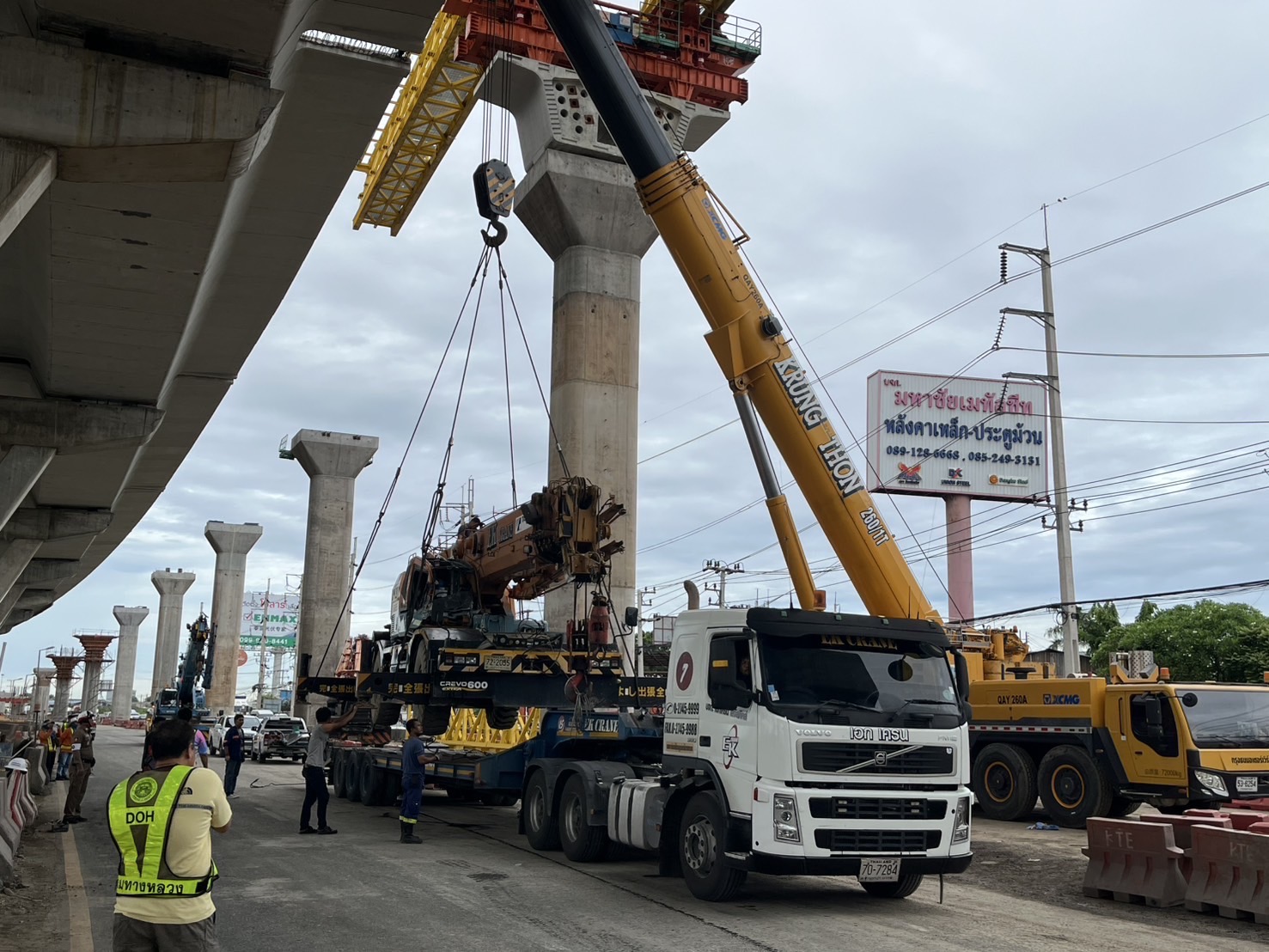 กรมทางหลวง โดย สำนักก่อสร้างสะพาน ขอชี้แจงกรณีอุบัติเหตุรถเครนพลิกคว่ำบนถนนพระราม 2 บริเวณกิโลเมตรที่ 27 (ขาเข้ากรุงเทพฯ) จังหวัดสมุทรสาคร เมื่อวันที่ 31 สิงหาคม 2568 เวลาประมาณ 02.30 น. เหตุการณ์นี้เกิดขึ้นระหว่างการปฏิบัติงานยกท่อนเหล็กของ บริษัท กรุงธนเอนยิเนียร์ จำกัด ผู้รับจ้างโครงการทางหลวงพิเศษหมายเลข 82 สายทางยกระดับบางขุนเทียน - บ้านแพ้ว ตอน 4